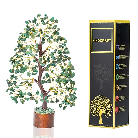 HindCraft Crystal Tree – Showpiece for Home Decor – Feng Shui Seven Chakra Tree – Home Decorations – – Marriage Gift Items – Antique Home Decor – 10-12 Inch (Green Aventurine (Golden Wire))